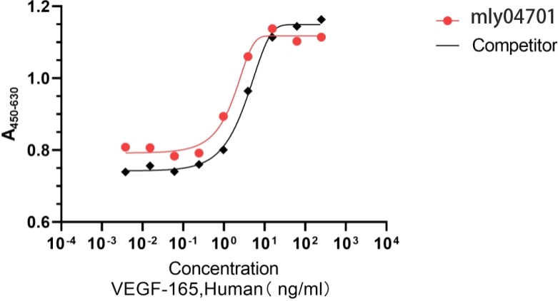 umbilicvein endothelial cells. The ED50  for this effect is 0.2-10 ng/mL. mly04701 was higher than the other competing product.
