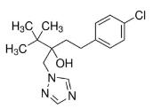 戊唑醇又名立克秀,化学名:(RS)-1-(4-氯苯基)-4,4-二甲基-3-(1H-1,2,4三唑-1-基甲基)戊-3-醇,理化性质:该品为无色晶体,熔点为102.4℃,蒸气压0.0133mPa(20℃):溶解度(20℃):水32mg/L,甲苯50-100g/L。