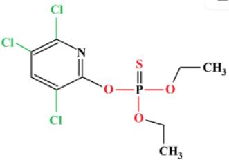氯吡硫磷,又名毒死蜱、氯蜱硫磷,化学名为O,O-二乙基-O-(3,5,6-三氯-2-吡啶基)硫代磷酸,分子式为C9H11Cl3NO3PS,呈白色结晶,具有轻微的硫醇味,是一种非内吸性广谱杀虫、杀螨剂,在土地中挥发性较高。