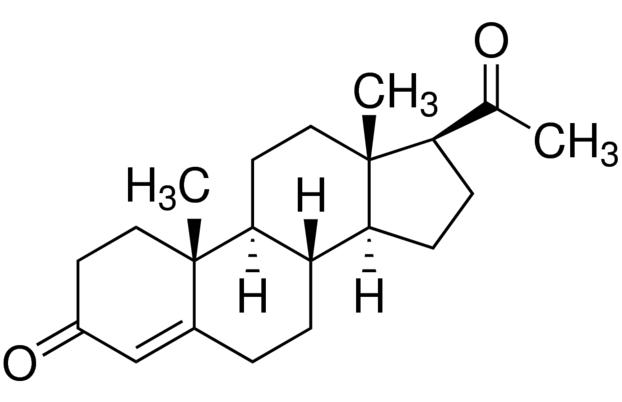 孕酮(黄体酮):白色结晶性粉末,无气味。易溶于乙醇(1:5)和氯仿(1:2),溶于乙醚(1:100),不溶于水。