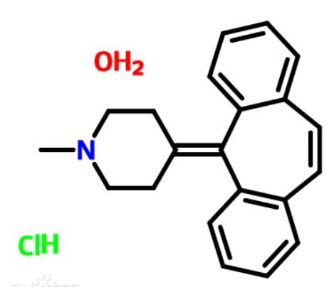 赛庚啶(二苯环庚啶)Cyproheptadine 为抗过敏药,对抗体内组胺对血管、支气管平滑肌的作用,从而消除过敏症状。赛庚啶可用于荨麻疹、湿疹、过敏性和接触性皮炎、皮肤瘙痒等过敏反应。