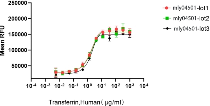 Highly consistent bioactivity between different production batches  of  Recombinant  Human  Transferrin  (Cat.  No. mly04501) .