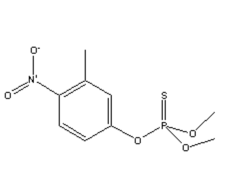 杀螟硫磷其化学名称为O,O二甲基一0-(3一甲基一4一硝基苯基)硫代磷酸酯,化学式为C9H12NO5PS,密度:1.3227g/cm3,熔点:0.3℃,沸点:140~145℃/13.3Pa,稳定性:遇碱水解,溶解性:不溶于水,但可溶于大多数有机溶剂中。