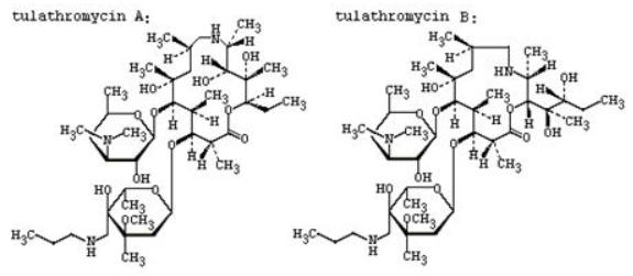 泰拉霉素(Tulathromycin)是一种新近上市且为动物专用的大环内酯类半合成抗生素,分子式为C41H79N3O12(分子量806)。